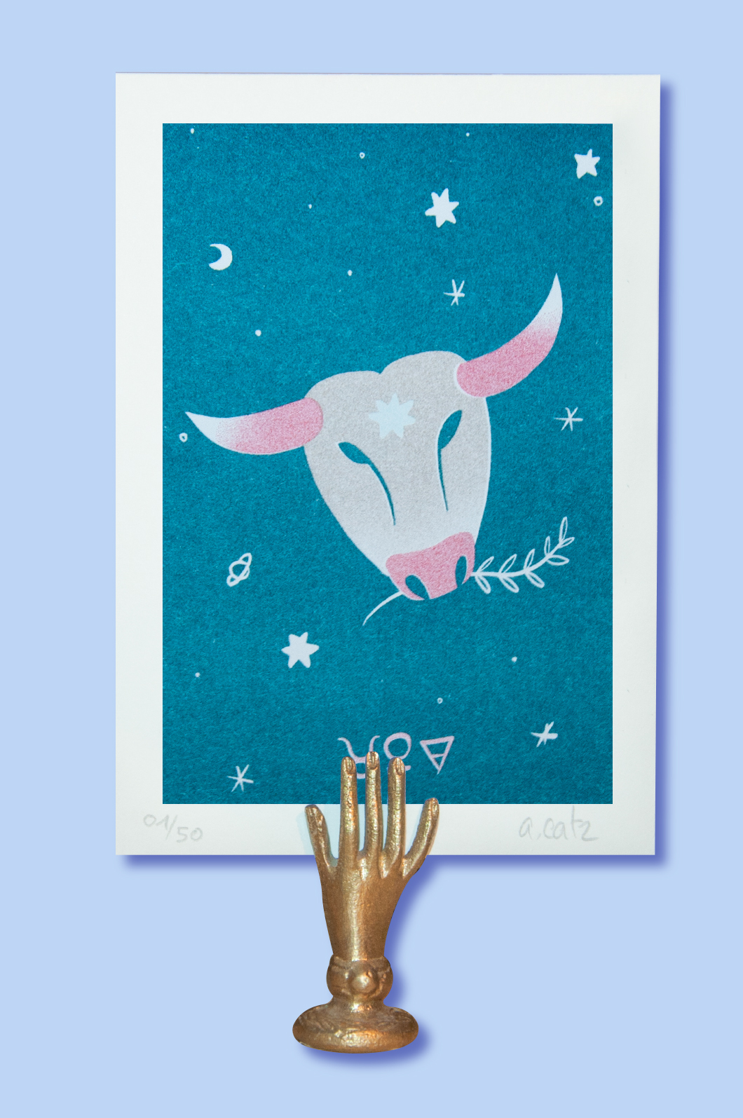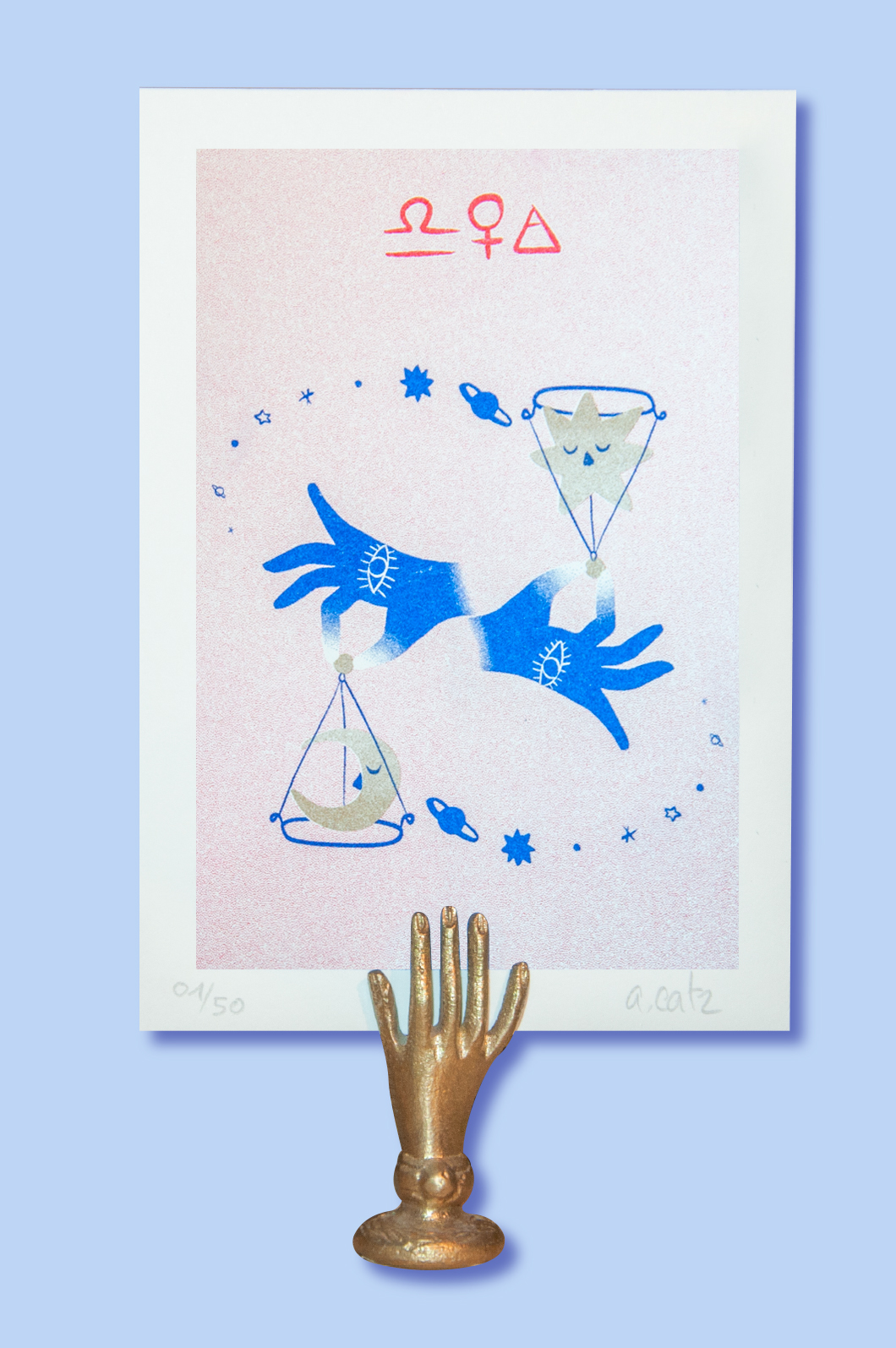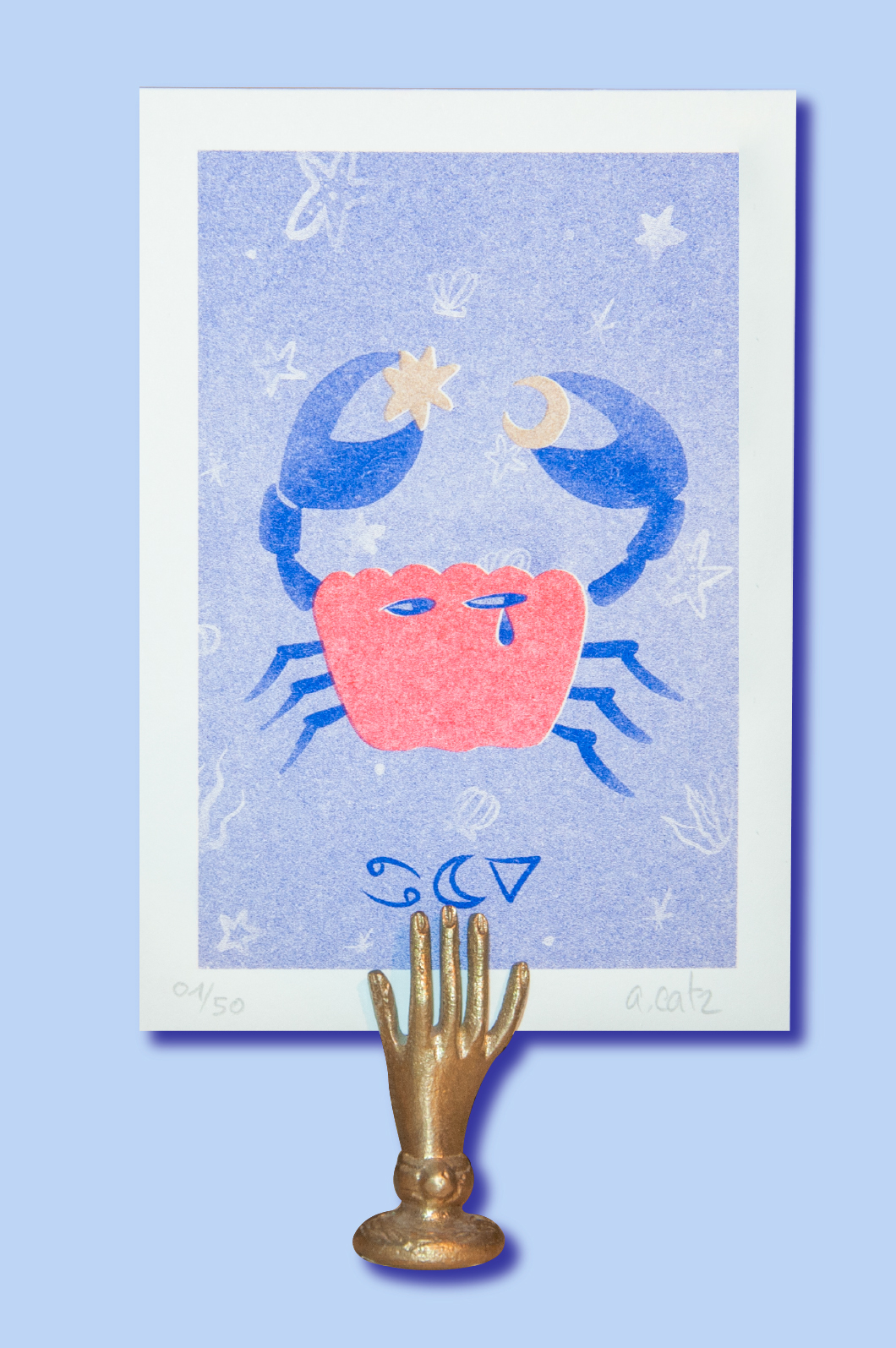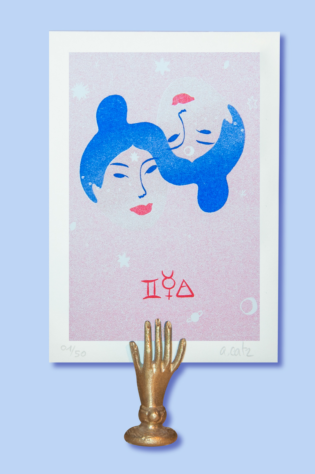 Carte signe astro des 12 signes, risographie numérotée et signée