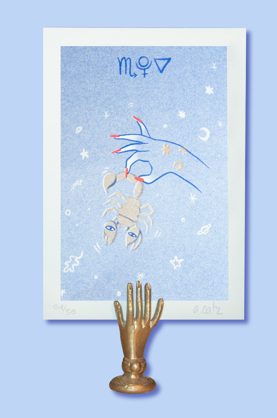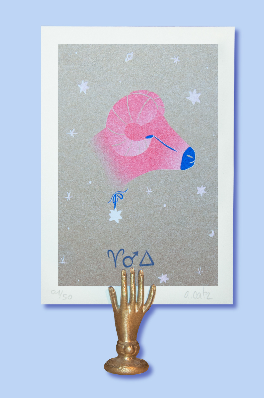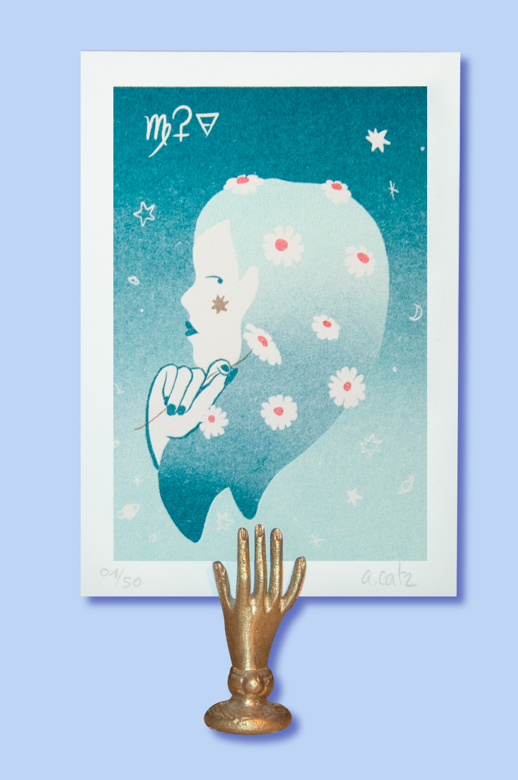 Carte signe astro des 12 signes, risographie numérotée et signée