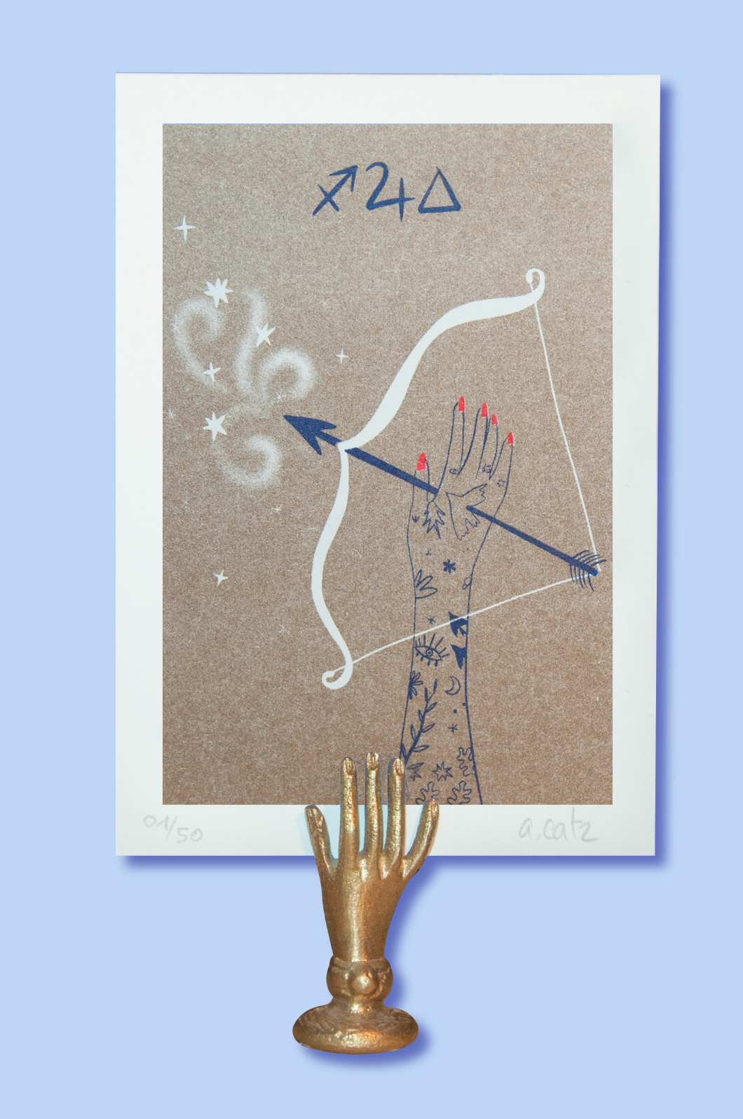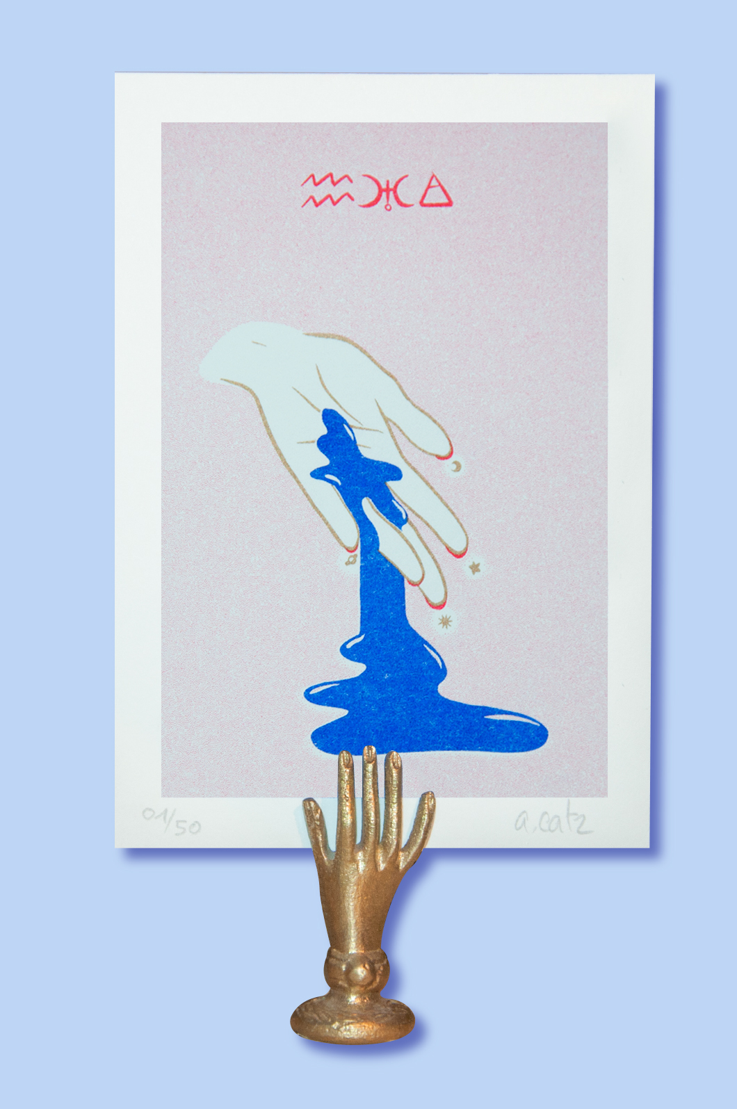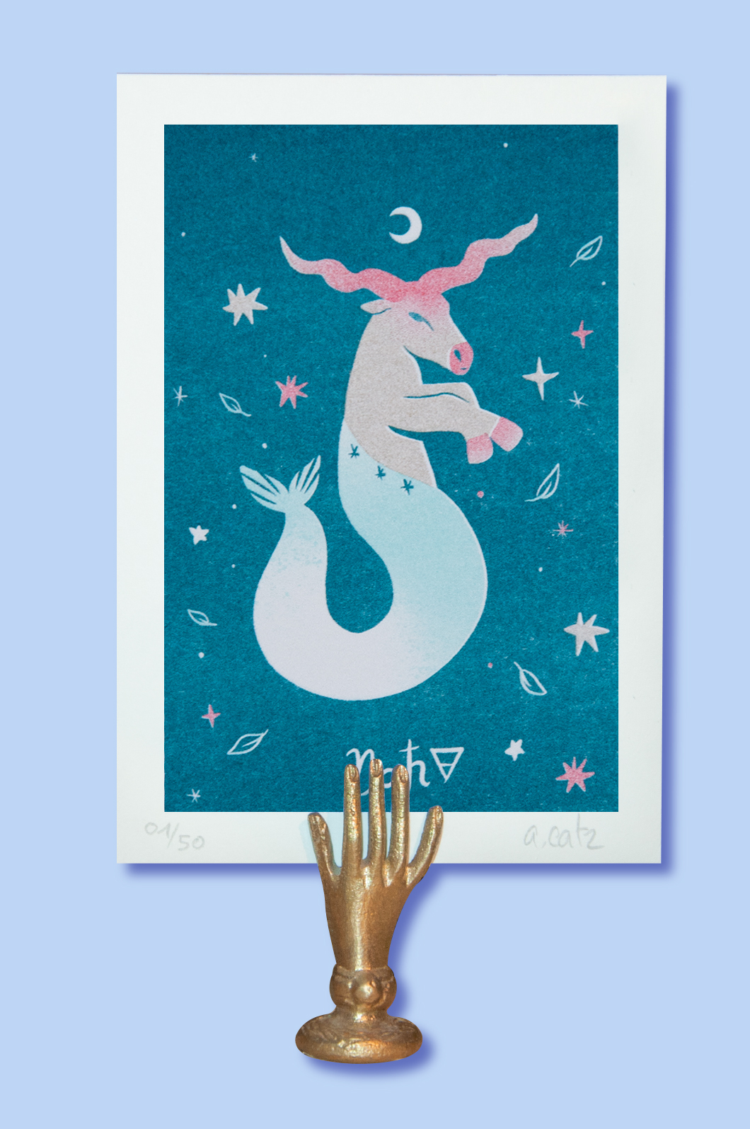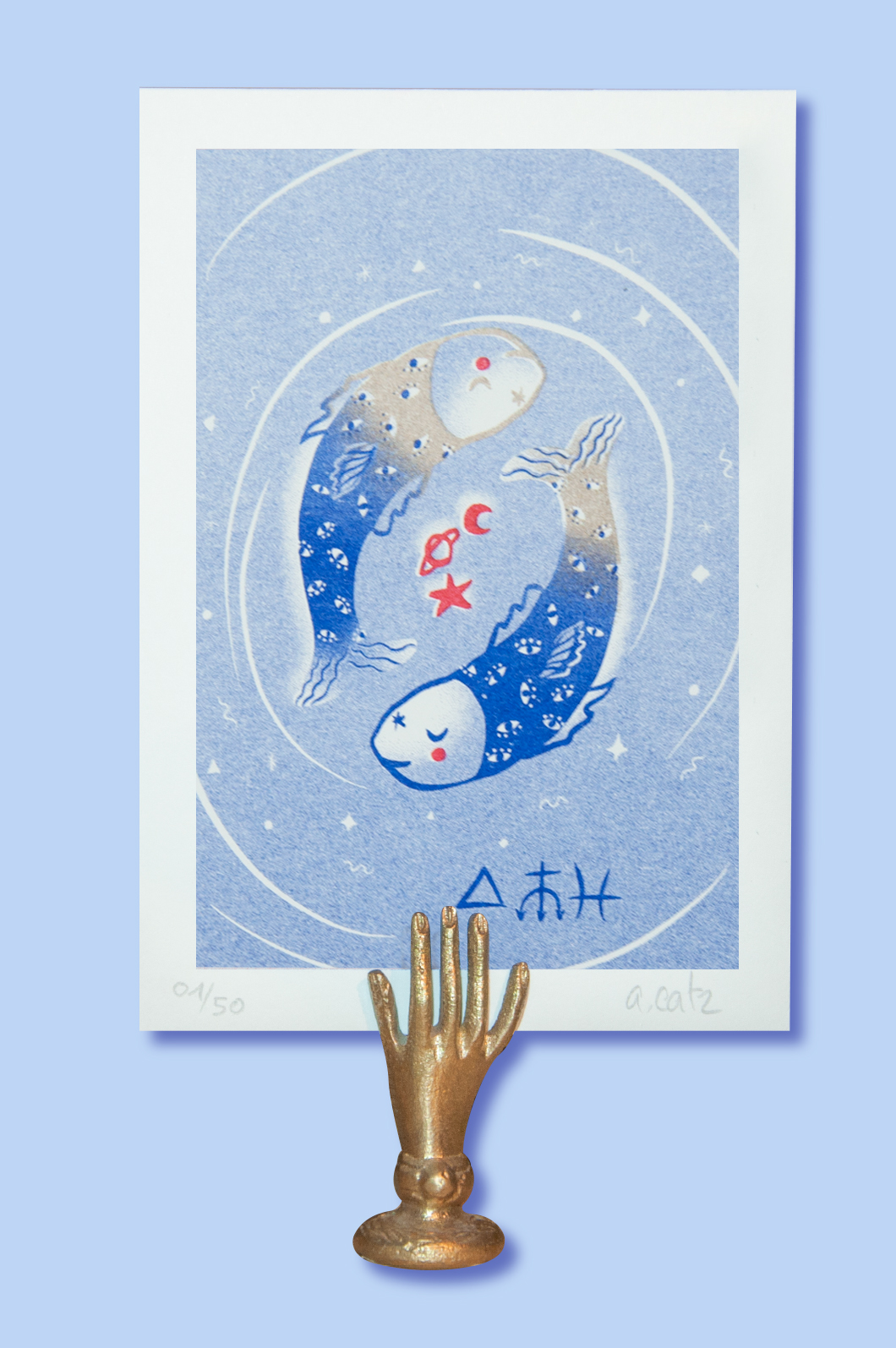Carte signe astro des 12 signes, risographie numérotée et signée